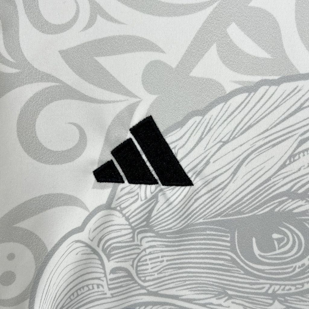 A Camisola Benfica II Edição Especial 25/26 Homem traz um design sofisticado e único, que combina tradição e modernidade. O modelo branco apresenta um padrão artístico em tons suaves, incorporando detalhes inspirados no símbolo do clube e elementos decorativos que elevam a elegância do equipamento.